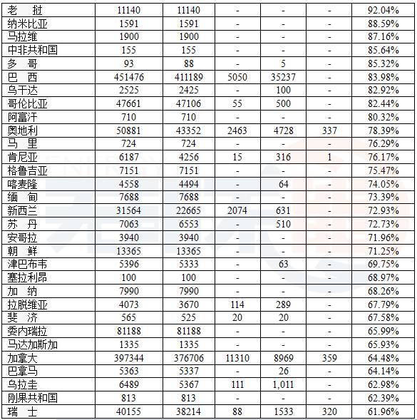 美國(guó)最強(qiáng),2015年占全球41%的份額,其次是巴西。美國(guó)和巴西占全球總量的65%。