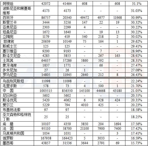 表2 wiki:世界各國(guó)再生能源發(fā)電 (單位:GWh)