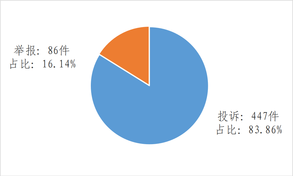 2023年4月,國家能源局派出機構(gòu)辦結(jié)投訴舉報533件(含往期結(jié)轉(zhuǎn)),環(huán)比下降29.78%、同比下降24.18%,累計辦結(jié)率98.22%。其中:投訴447件,環(huán)比下降34.84%、同比下降32.38%;舉報86件,環(huán)比增長17.81%、同比增長104.76%。