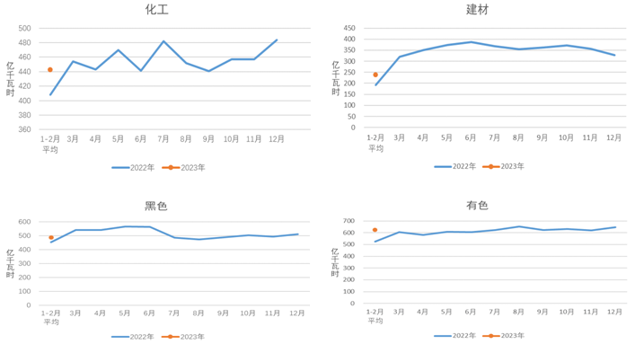圖 2022、2023年重點(diǎn)行業(yè)分月用電量情況