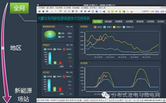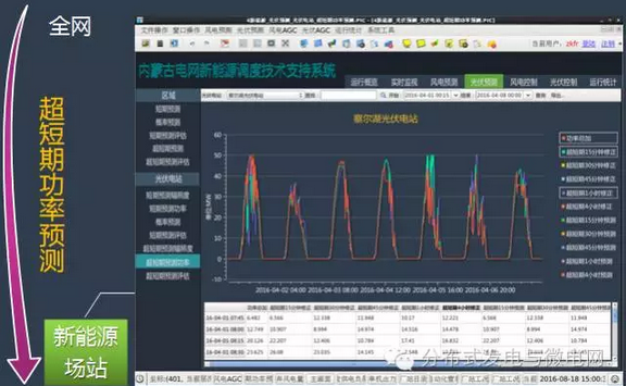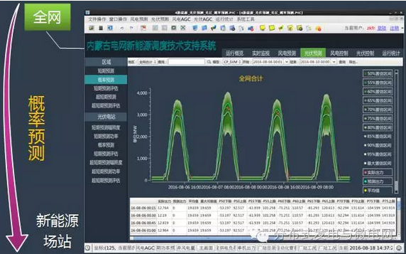 2014年12月,光伏發(fā)電信息采集和實(shí)時(shí)監(jiān)視;2015年11月,光伏發(fā)電短期和超短期預(yù)測;2016年1月,光伏發(fā)電概率預(yù)測;2016年7月,風(fēng)光火蓄協(xié)調(diào)實(shí)時(shí)閉環(huán)控制,新能源調(diào)度運(yùn)行指標(biāo)統(tǒng)計(jì)系統(tǒng);全面實(shí)現(xiàn)可觀、可控、可預(yù)測。