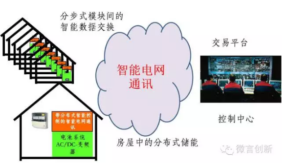 分布式微電網(wǎng)上的能量和產(chǎn)生的數(shù)據(jù),通過智能電網(wǎng)和因特網(wǎng)實現(xiàn)互聯(lián)互通,將相關信息發(fā)布到交易平臺上。微電網(wǎng)本身也由很多小模塊組成,集結在一起能夠做到在當?shù)叵牡羲a(chǎn)生的能量。