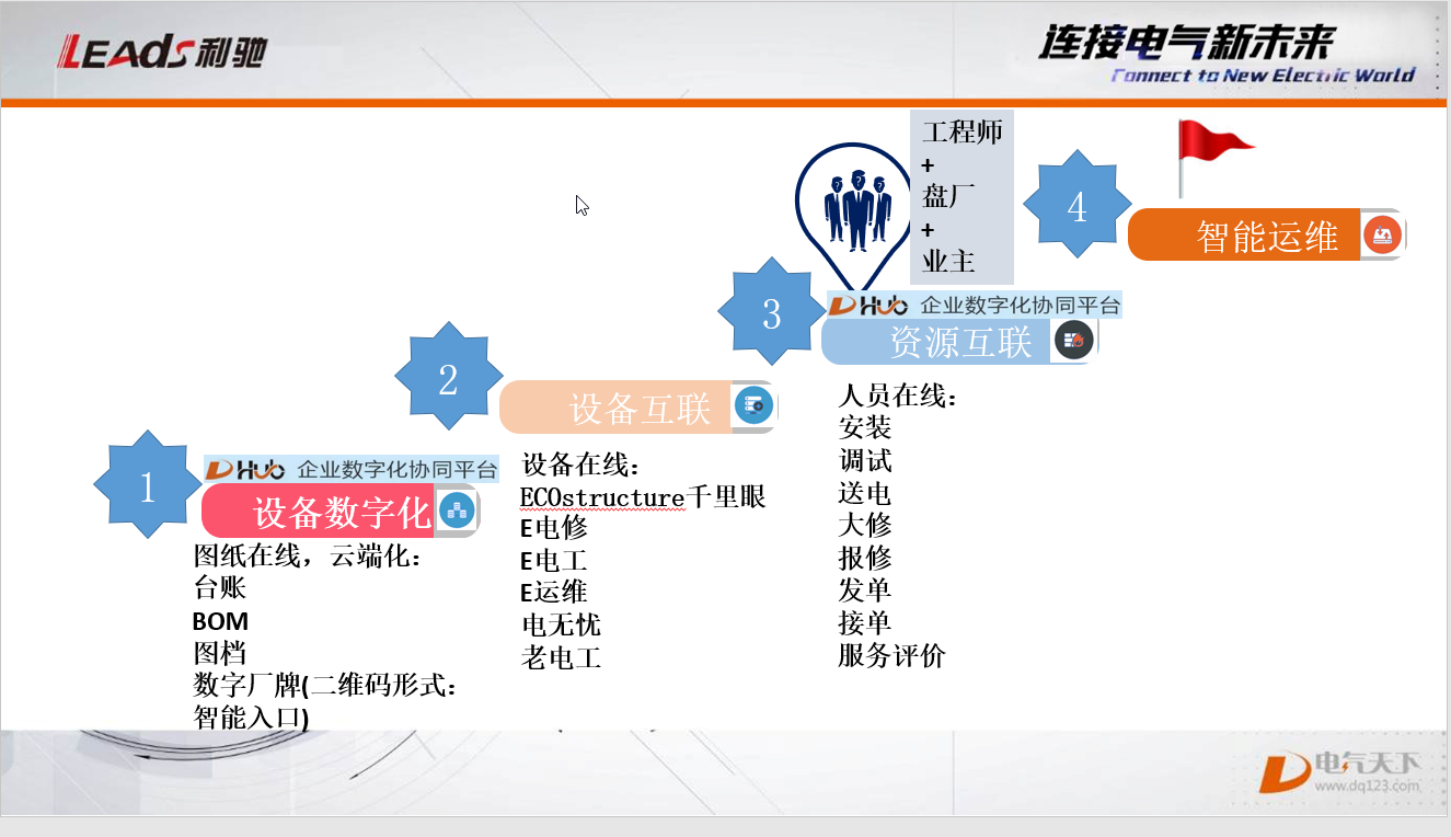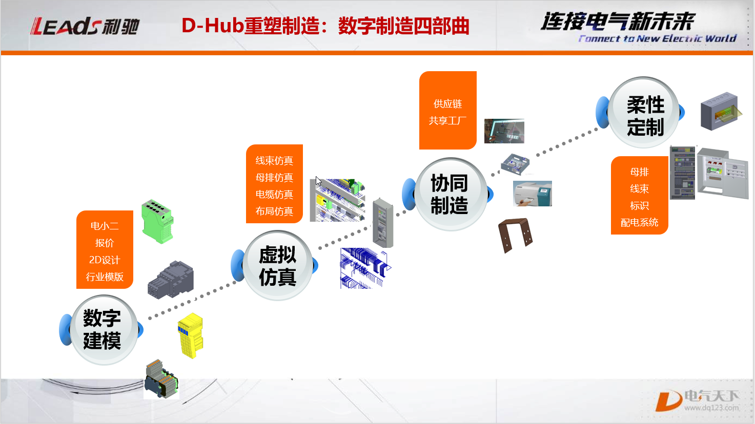 采訪中,令永卓感慨道:“我已經(jīng)服務(wù)于電氣行業(yè)25年,很榮幸作為參與者一路見證電氣行業(yè)由傳統(tǒng)走向今天的智能化,這些離不開智能制造近年來的大力推動。當(dāng)前企業(yè)紛紛將其納入發(fā)展的戰(zhàn)略目標(biāo),利馳也不例外,不斷創(chuàng)新研發(fā),先后推出了工業(yè)電氣一站式工作平臺——電氣天下和D-Hub企業(yè)數(shù)字化協(xié)同平臺,幫助電力裝備制造行業(yè)智造升級。” 據(jù)了解,電氣天下針對個人用戶開放服務(wù),提供海量免費(fèi)工業(yè)設(shè)計軟件、選型數(shù)據(jù)及服務(wù)、專業(yè)文獻(xiàn)等資源,幫助電氣行業(yè)上下游實(shí)現(xiàn)電氣的選型、圖紙、樣本資料、軟件下載,涵蓋電氣指數(shù)、電氣智庫知識分享一體化與一站式的服務(wù)。而把眾多工業(yè)軟件集成到一個云端數(shù)據(jù)庫,一個統(tǒng)一的數(shù)字化協(xié)同平臺——D-Hub,則成功地打通了選型、報價、設(shè)計、工藝、制造、供應(yīng)鏈的數(shù)據(jù),使得企業(yè)的數(shù)據(jù)資產(chǎn)可以跨部門、跨企業(yè)的共享和復(fù)用,并讓數(shù)據(jù)在流動中不斷增值。目前D-hub已覆蓋多種模板,建立了以3D元件為核心的覆蓋配電、自動化行業(yè)1000多個品牌、3萬多個系列、2.5億多個電氣及自動化元件數(shù)據(jù)庫。令永卓直言:“D-Hub的功能遠(yuǎn)不止此,利馳已經(jīng)在D-Hub上開始發(fā)力,發(fā)展數(shù)據(jù)可視化技術(shù),進(jìn)而實(shí)現(xiàn)設(shè)備互聯(lián)、產(chǎn)線互聯(lián),以及智能調(diào)度,助力電力裝備業(yè)的設(shè)計、制造的全流程數(shù)字化。并且,未來D-Hub將帶來更多可能性,實(shí)現(xiàn)設(shè)備數(shù)字化,進(jìn)而將設(shè)備資產(chǎn)與維修工程師和設(shè)備生產(chǎn)商連接起來,實(shí)現(xiàn)資源互聯(lián)和設(shè)備在線,最終實(shí)現(xiàn)智能運(yùn)維,更好地服務(wù)電力電氣行業(yè)。”