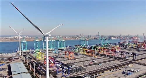 12月15日,隨著天津港北疆港區(qū)C段智能化集裝箱碼頭北側(cè)的兩臺(tái)風(fēng)機(jī)葉片緩緩啟動(dòng),全球首個(gè)零碳碼頭智慧綠色能源系統(tǒng)投用,并在天津港并網(wǎng)發(fā)電。