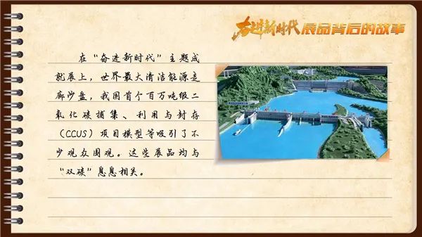 不只是世界最大清潔能源走廊沙盤,位于“奮進(jìn)新時代”主題成就展中央綜合展區(qū)全面深化改革開放單元的我國首個百萬噸級二氧化碳捕集、利用與封存(CCUS)項目模型等展品,同樣吸引了不少人圍觀。這些展品均與“雙碳”息息相關(guān)。