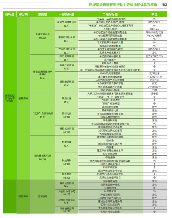 區(qū)域?qū)蛹?jí)低碳轉(zhuǎn)型行動(dòng)力評(píng)價(jià)指標(biāo)體系及權(quán)重。綠色和平供圖