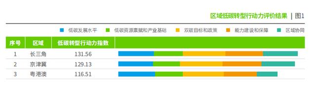 “長(zhǎng)三角的低碳轉(zhuǎn)型行動(dòng)力指數(shù)最高;京津冀在“雙碳”目標(biāo)和政策及能力建設(shè)和保障方面表現(xiàn)最突出;粵港澳則在低碳發(fā)展水平方面最具優(yōu)勢(shì)。”