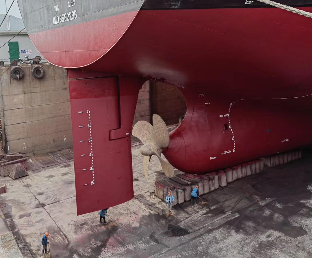 自2022年底開始至今,海運集團對“金海輝”等6艘塢修船舶,投入比原來高60%的成本,采用高效防污涂層,使用優(yōu)良的船殼打砂、噴涂工藝減小船體的阻力,及時進行船殼水下清污作業(yè)等,更有效地抑制海洋生物生長,從而使船舶水線下表面保持更加光滑,大大減少船舶航行的阻力,減少船舶燃油的耗量。
