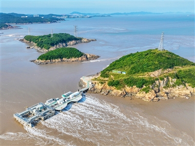 8月23日,浙江省舟山市岱山縣秀山島海域,全球最大兆瓦級潮流能發(fā)電機組LHD1600“奮進號”正在平穩(wěn)運行,源源不斷地將來自大海的清潔能源通過國家電網(wǎng)輸送到千家萬戶。