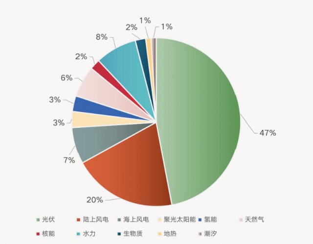 該機(jī)構(gòu)還預(yù)測(cè),到2050年,光伏將在全球電力裝機(jī)中的占比達(dá)到47%,風(fēng)電占比為27%。