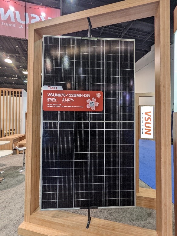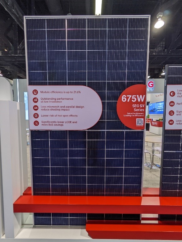 據(jù)不完全統(tǒng)計,在本次RE+展會中,中國領(lǐng)軍企業(yè)天合光能、阿特斯、正泰,海外企業(yè)韓華、SEG、Waaree等10多家光伏領(lǐng)先企業(yè)紛紛推出600W+產(chǎn)品。600W+產(chǎn)品在北美已經(jīng)蔚然成風(fēng),成先進組件的代表。