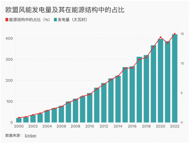 風能產業(yè)呈現出不同的景象:根據歐盟委員會的數據,目前歐盟產能可以滿足歐盟85%的風能需求。