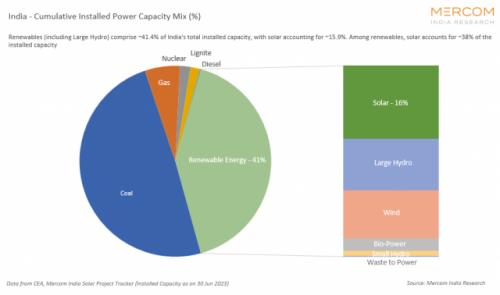 截至6月30日,印度安裝的可再生能源發(fā)電設(shè)施(包括大型水電項目)裝機(jī)容量為173.5GW,占總體能源裝機(jī)容量的41.4%,與上一季度的37.9%相比略有增加。