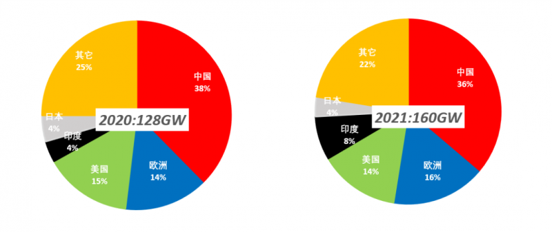 2021年,預(yù)計(jì)全球光伏總裝機(jī)量將超過160GW,相比于2020年總裝機(jī)量將增加25%