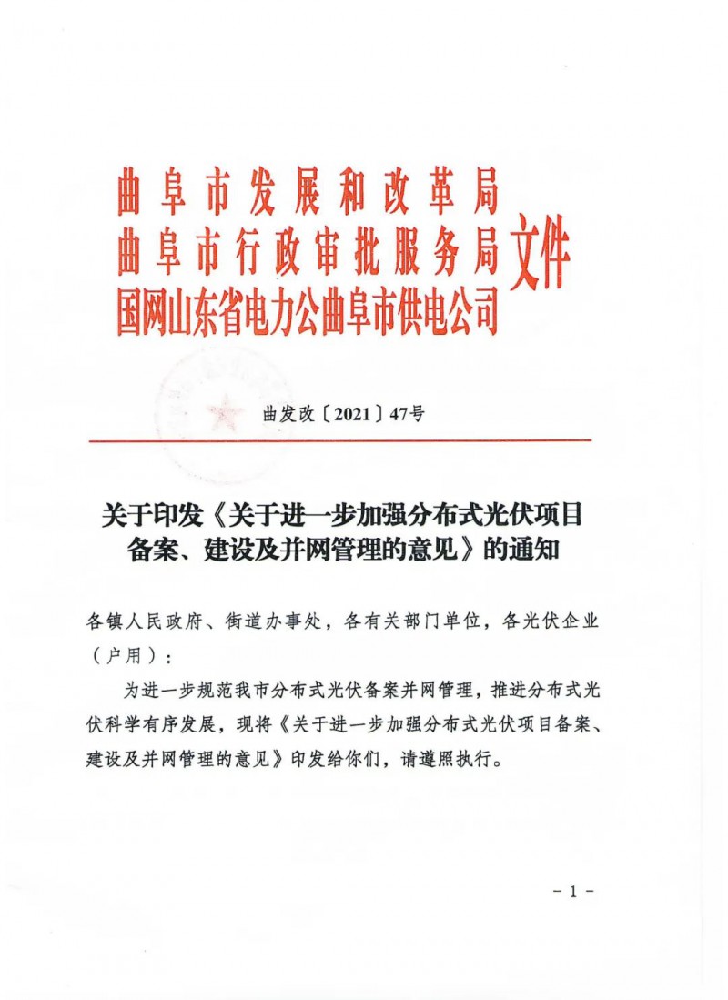 近日(12月10日),山東省曲阜市發(fā)改局發(fā)布《關(guān)于進(jìn)一步加強(qiáng)分布式光伏項(xiàng)目備案、建設(shè)及并網(wǎng)管理的意見》,意見指出,要規(guī)范分布式光伏違約私自增容處理: