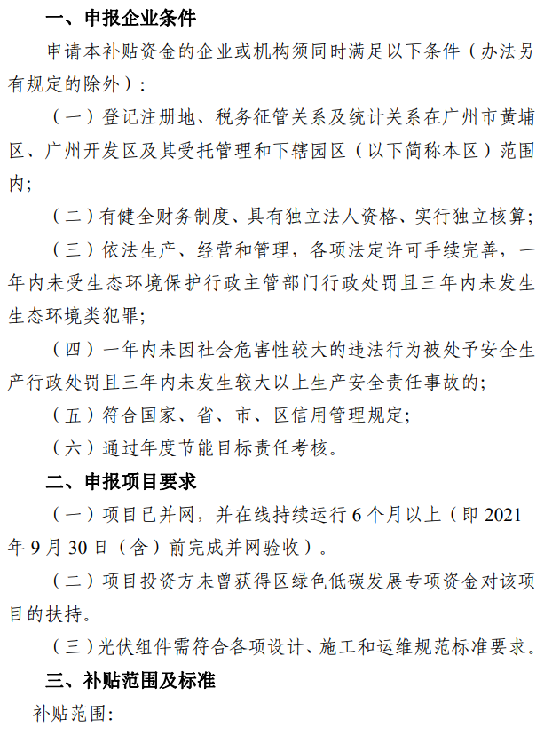 廣州黃埔區(qū)、開(kāi)發(fā)區(qū)公布分布式光伏補(bǔ)貼:非公共機(jī)構(gòu)0.15 元/度,公共機(jī)構(gòu)0.3 元/度!