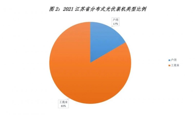 根據(jù)電網(wǎng)公司分布式光伏并網(wǎng)數(shù)據(jù),截止到 2021 年 12 月,江蘇分布式光伏累計(jì)并網(wǎng)規(guī)模為 982.91 萬(wàn)千瓦,其中,累計(jì)戶用光伏并網(wǎng) 163.37 萬(wàn)千瓦,約占比17%;累計(jì)工商業(yè)分布式光伏并網(wǎng) 819.54 萬(wàn)千瓦,約占比 83%??梢?jiàn),江蘇分布式光伏市場(chǎng)以工商業(yè)分布式為絕對(duì)主導(dǎo)。