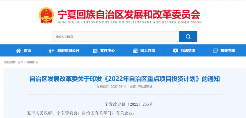 4月11日,寧夏發(fā)改委發(fā)布《2022年自治區(qū)重點項目投資計劃》,涉及光伏重點項目為6個制造業(yè)項目、17個重點光伏發(fā)電建設項目,規(guī)模為3.425GW。