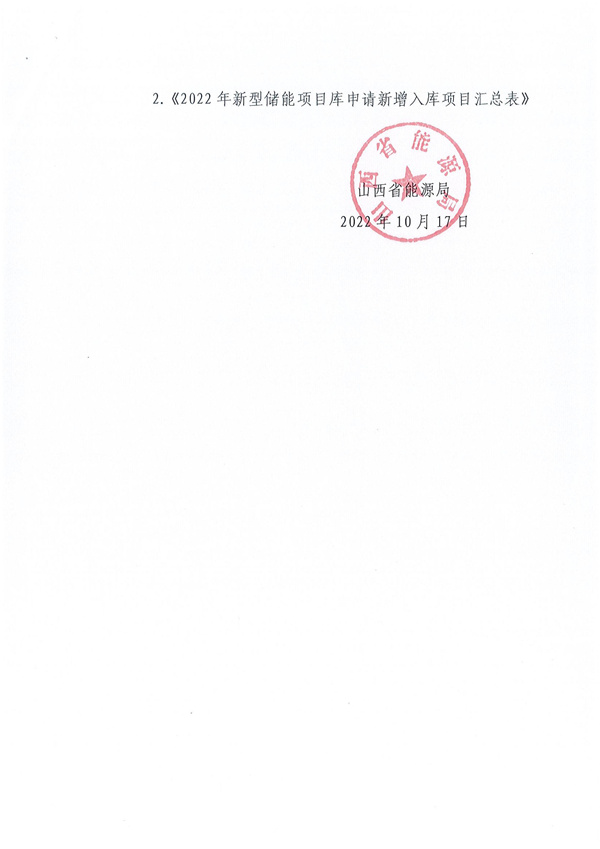 山西能源局印發(fā)《關(guān)于建立和報(bào)送新型儲(chǔ)能升級(jí)規(guī)劃項(xiàng)目庫的通知》