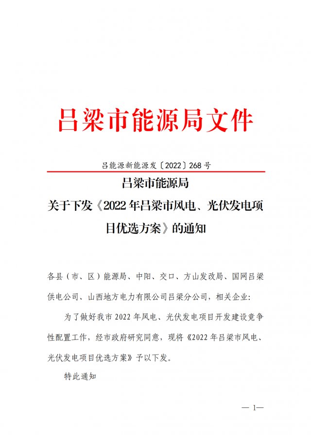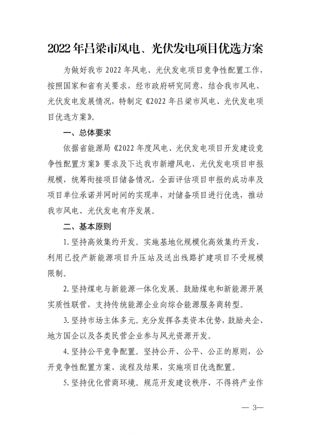 近日,山西呂梁市能源局發(fā)布關(guān)于《2022年呂梁市風(fēng)電、光伏發(fā)電項目優(yōu)選方案》的通知。
