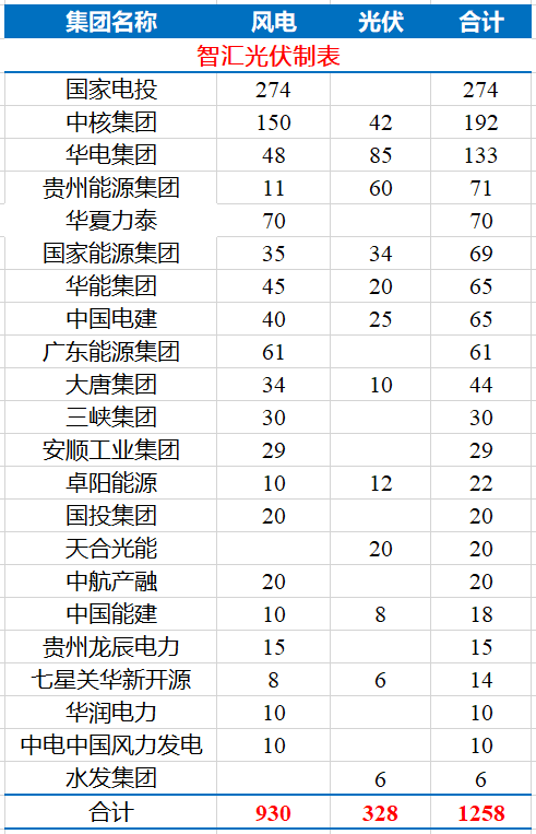 表:貴州第二批12.6GW新能源項目投資企業(yè)情況(單位:萬千瓦)