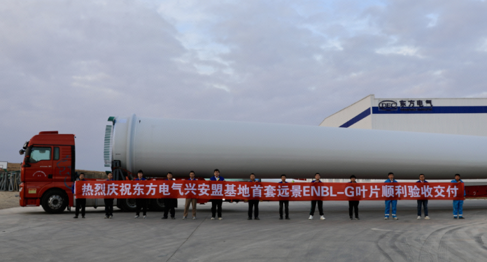 近日,大唐吉林前郭20萬千瓦風(fēng)電項(xiàng)目首套ENBL-G型葉片在東方風(fēng)電興安盟制造基地成功產(chǎn)出并發(fā)運(yùn),項(xiàng)目計(jì)劃交付22套ENBL-G型葉片。