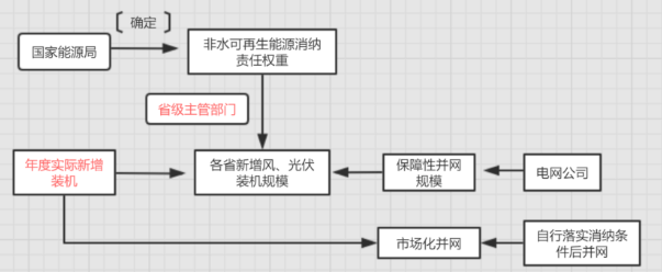 從文件中首先可以明確的是,2021年國家能源局將通過非水可再生能源消納責(zé)任權(quán)重(下稱“非水權(quán)重”)來指導(dǎo)各省的年度新增并網(wǎng)規(guī)模,不再下發(fā)具體指標(biāo);根據(jù)非水權(quán)重,省級能源主管部門自行計算年度新增風(fēng)、光伏裝機規(guī)模,合理確定本地區(qū)2021年風(fēng)電、光伏發(fā)電項目年度新增并網(wǎng)規(guī)模和新增核準(zhǔn)(備案)規(guī)模。