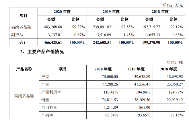 根據(jù)硅業(yè)分會(huì)數(shù)據(jù),2020 年度國(guó)內(nèi)多晶硅產(chǎn)量約為 39.6 萬(wàn)噸,該公司對(duì)應(yīng)期間的多晶硅產(chǎn)量為 7.73 萬(wàn)噸,占國(guó)內(nèi)多晶硅產(chǎn)量的 19.52%;2020 年度國(guó)內(nèi)單晶硅片用料產(chǎn)量為 32.6 萬(wàn)噸,占國(guó)內(nèi)多晶硅產(chǎn)量的 82.4%,該公司在占據(jù)主流的單晶硅片用料的市占率為 22.68%。