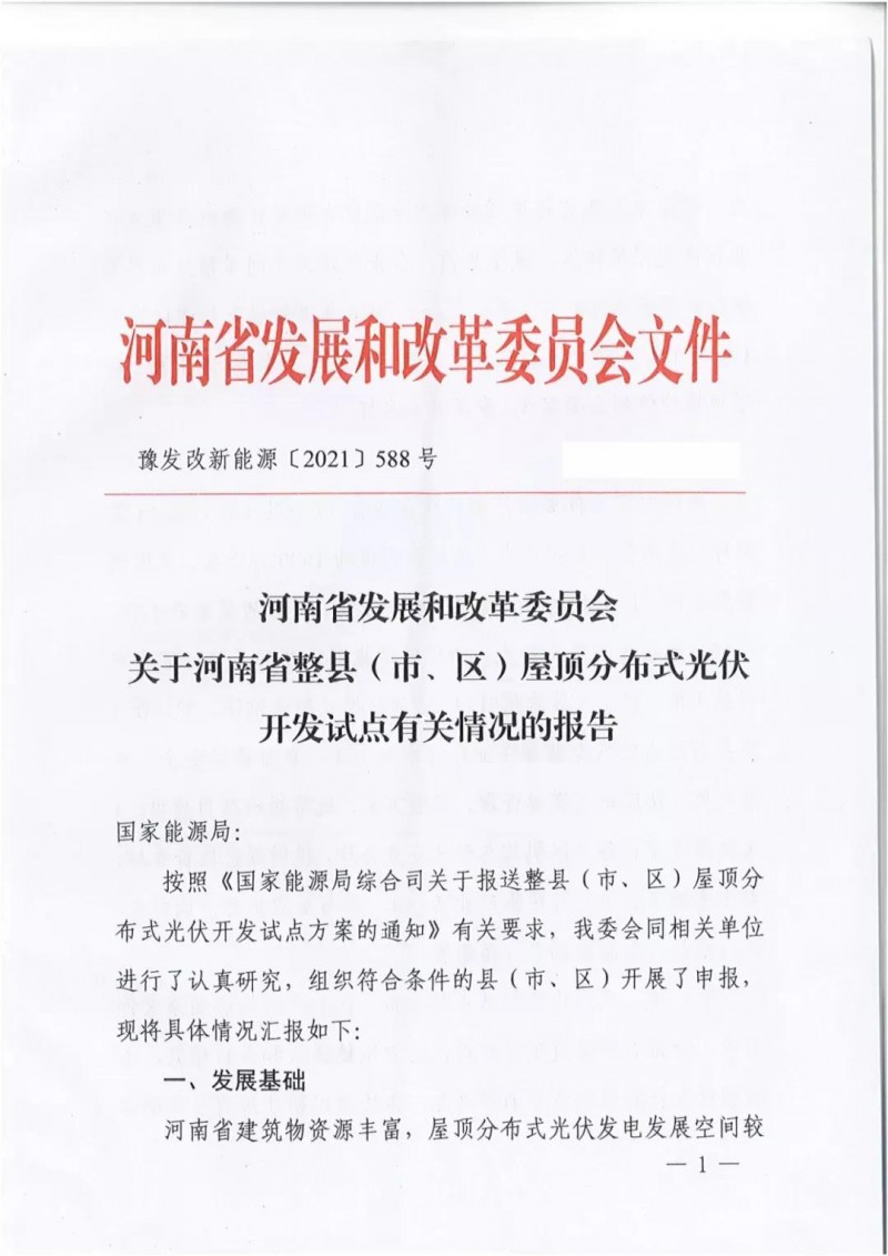 近日,河南發(fā)改委下發(fā)關于《關于河南省整縣(市、區(qū))屋頂分布式光伏開發(fā)試點有關情況的報告》,文件顯示,河南省共有66個省(市、區(qū))基本符合申報要求,擬建設規(guī)模約1500萬千瓦。文件指出,考慮到整縣(市、區(qū))開發(fā)涉及建筑物類型較多、建筑質量參差不齊、產權歸屬較為復雜等特點,為保障試點建設順利開展,試點申報縣(市、區(qū))主要采用“1+1+X”建設模式整體推進。
