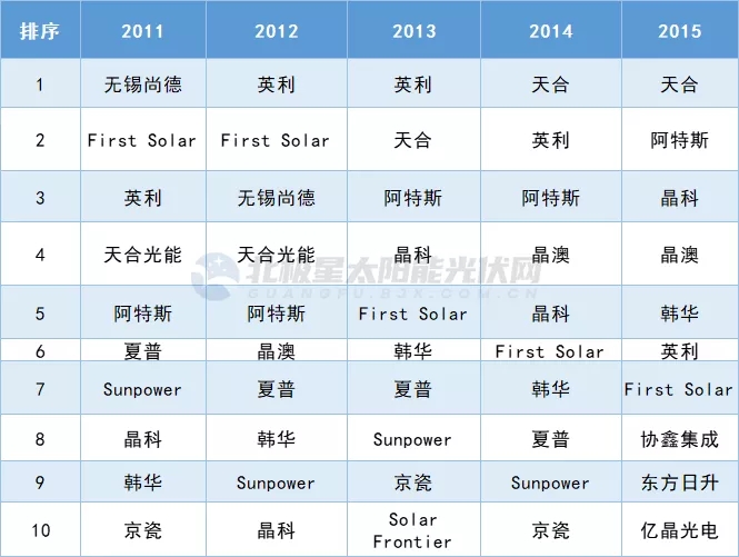 注:上述排行根據(jù)中國(guó)光伏行業(yè)協(xié)會(huì)數(shù)據(jù)整理,排名僅供參考