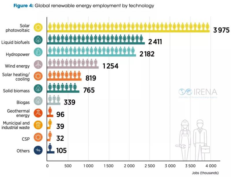 據(jù)可再生能源署發(fā)布的最新報(bào)告,2020年全世界約有1200萬個(gè)可再生能源工作崗位,其中太陽能約占三分之一。