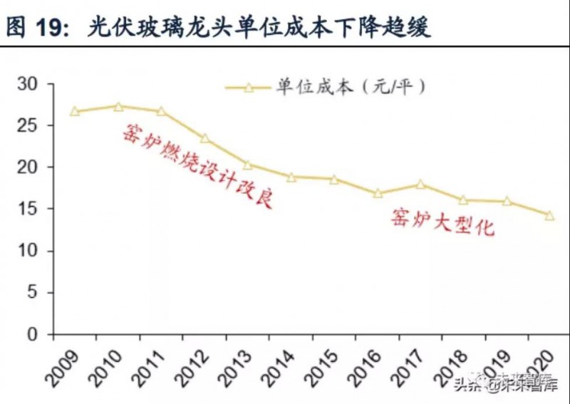 光伏玻璃受益雙玻滲透提升,背部應用打開增量空間。根據CPIA協(xié)會對賽伍技術董事長的專訪內容,透明背板因為能夠實現(xiàn)組件的輕量化,預計將占到雙面組件20%市場份額,同時根據CPIA預測,2025年雙面組件市場份額有望達到60%,由此我們預計2025年雙面單玻(透明背板)組件占比為12%,不考慮雙面均為透明背板的組件,則雙面雙玻組件滲透率為48%,單面單玻組件占比為40%,對應光伏玻璃需求將在2025年接近28億平,2020-2025年CAGR達22%。