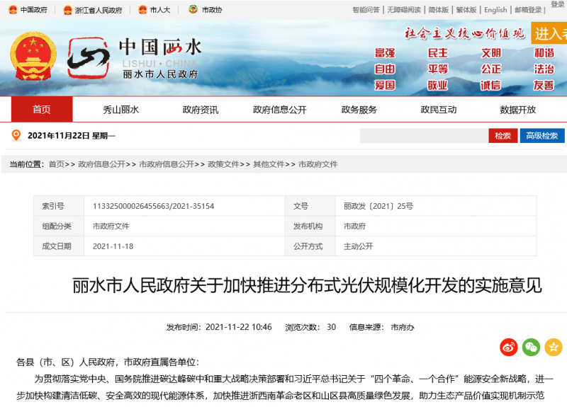 為貫徹落實(shí)黨中央、國(guó)務(wù)院推進(jìn)碳達(dá)峰碳中和重大戰(zhàn)略決策部署和習(xí)近平總書記關(guān)于“四個(gè)革命、一個(gè)合作”能源安全新戰(zhàn)略,進(jìn)一步加快構(gòu)建清潔低碳、安全高效的現(xiàn)代能源體系,加快推進(jìn)浙西南革命老區(qū)和山區(qū)縣高質(zhì)量綠色發(fā)展,助力生態(tài)產(chǎn)品價(jià)值實(shí)現(xiàn)機(jī)制示范區(qū)、城鄉(xiāng)共同富裕先行區(qū)建設(shè),根據(jù)國(guó)家和浙江省關(guān)于加快光伏應(yīng)用發(fā)展有關(guān)要求和整縣(市、區(qū))推進(jìn)分布式光伏規(guī)?;_發(fā)試點(diǎn)工作部署,現(xiàn)就推動(dòng)我市分布式光伏規(guī)?;_發(fā)提出如下意見。