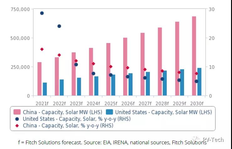 至2030年,美國和中國分別會(huì)增加151.3GW和436.9GW太陽能裝機(jī)容量,占太陽能預(yù)期新增總量的57%。