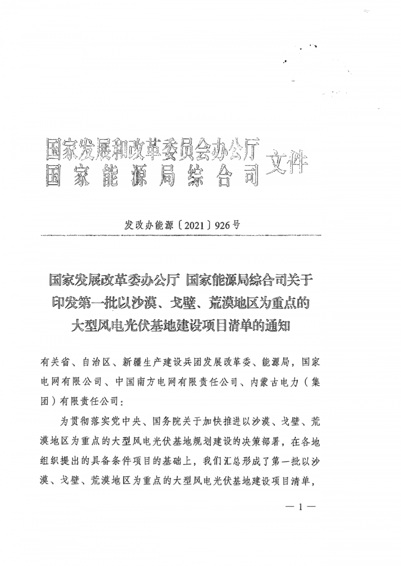 日前,光伏們了解到,各省已收到國(guó)家能源局、國(guó)家發(fā)改委印發(fā)的《第一批以沙漠、戈壁、荒漠地區(qū)為重點(diǎn)的大型風(fēng)電、光伏基地建設(shè)項(xiàng)目清單的通知》,涉及19省份,規(guī)模總計(jì)97.05GW。
