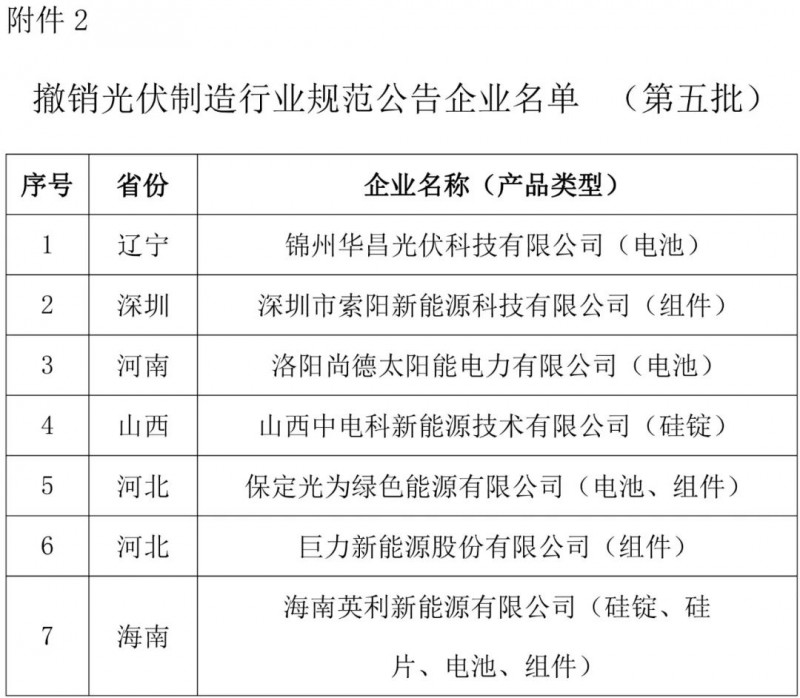 2.撤銷光伏制造行業(yè)規(guī)范公告企業(yè)名單(第五批)