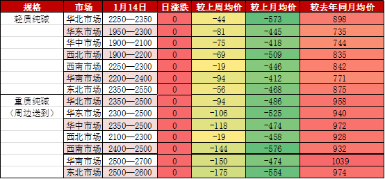 三、純堿現(xiàn)貨市場周度情況