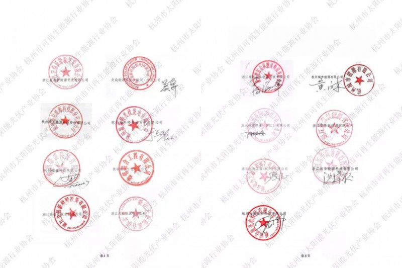 為踐行該《導則》在杭州全域及浙江全省的推廣應用,在杭州市太陽能光伏產(chǎn)業(yè)協(xié)會和杭州市可再生能源行業(yè)協(xié)會的組織下,浙江正泰新能源開發(fā)有限公司、龍焱能源科技(杭州)有限公司、杭州桑尼能源科技股份有限公司、杭州福斯特光伏發(fā)電有限公司、杭州帷盛科技有限公司、德鄰聯(lián)合工程有限公司、浙江交投新能源投資有限公司、浙江天裕能源有限公司、浙江維旺合縱能源科技有限公司、杭州城市能源有限公司、泛太能源環(huán)境(浙江)有限公司、浙江寰泰新能源有限公司、浙江拓華能源科技有限公司、潔云電力工程(杭州)有限公司、杭州眾能光電科技有限公司共十五家光伏企業(yè),根據(jù)《導則》條款,聯(lián)合簽署了《杭州市屋頂分布式光伏安裝與運維服務行業(yè)自律公約》,帶頭向社會公開承諾加強行業(yè)自律,共同維護浙江省和杭州市整縣(市、區(qū))推進屋頂分布式光伏開發(fā)工作中的市場秩序和良好發(fā)展。