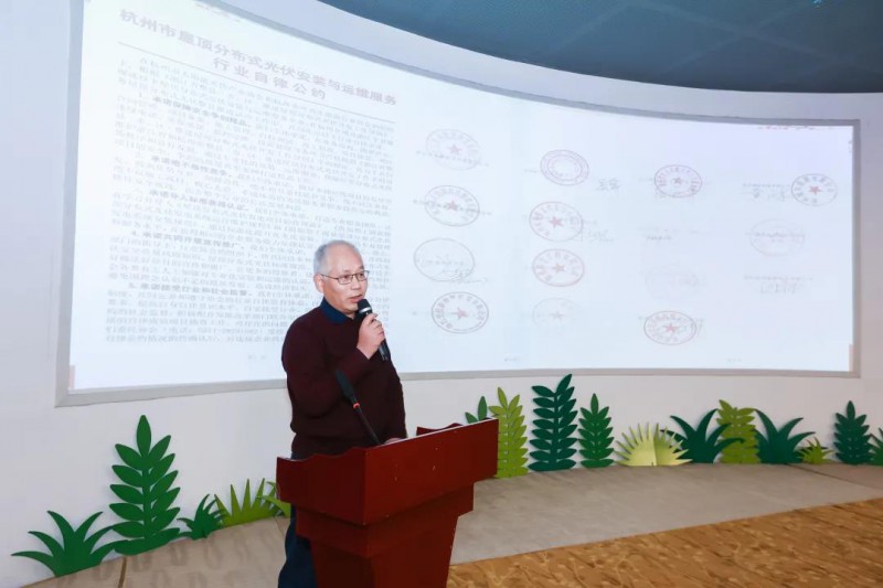 2022年1月18日,全國首個整縣推進模式下的行業(yè)自律公約《杭州市屋頂分布式光伏安裝與運維服務行業(yè)自律公約》,由協(xié)會副會長、標技委副主任郭衛(wèi)東在杭州低碳科技館召開的“一心一意助力零碳 共創(chuàng)共享前行攻關”主題論壇上正式發(fā)布。