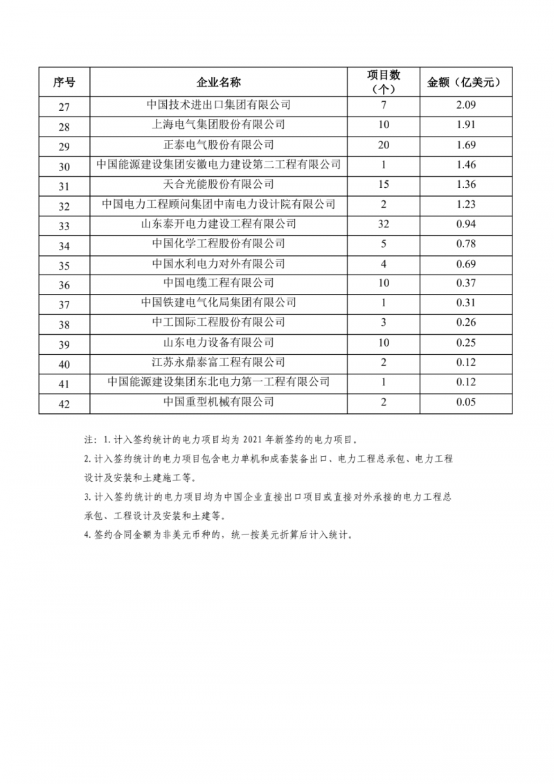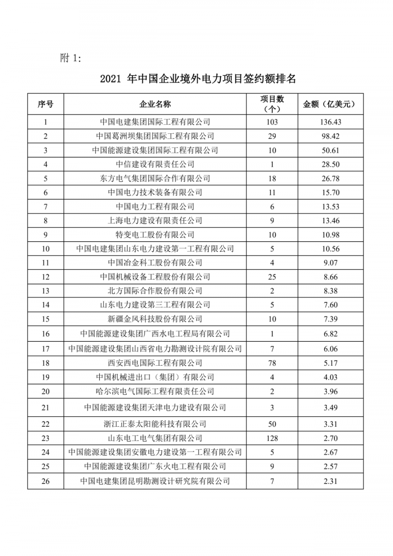 此外,2021年中國(guó)企業(yè)境外電力項(xiàng)目簽約額排名總榜依然是由上述企業(yè)引領(lǐng)。