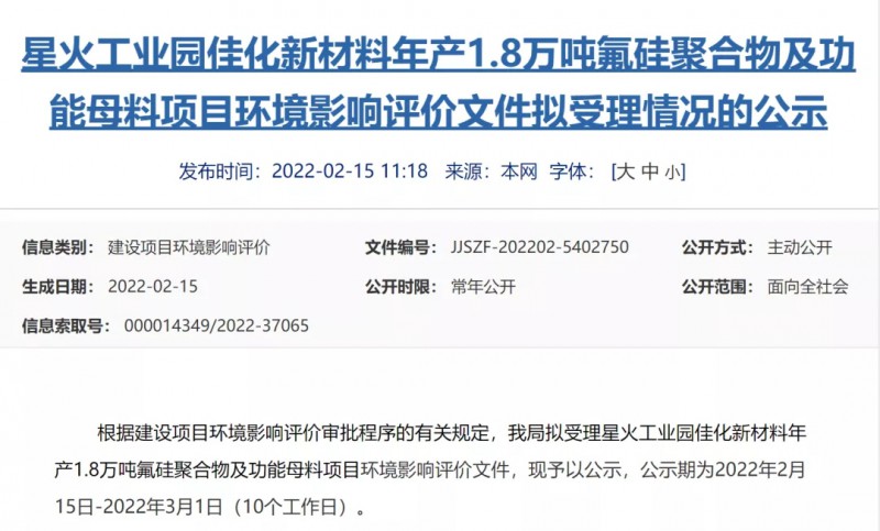 原標題:年產(chǎn)1.8萬噸氟硅聚合物及功能母料項目環(huán)評報告公示