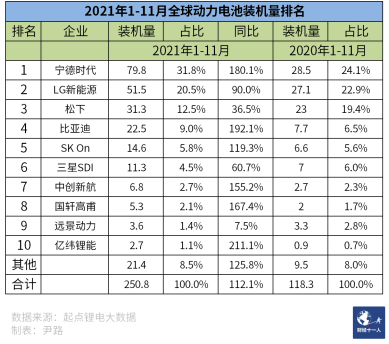 圖3:2021年1-11月全球動力電池裝機(jī)量排名