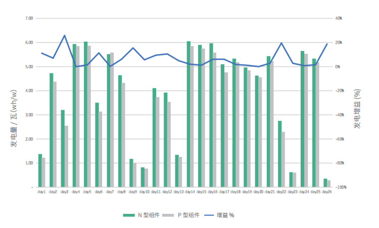 技術(shù)人員指出,N型TOPCon已經(jīng)在量產(chǎn)效率、成本控制和市場份額上取得明顯優(yōu)勢,高效N型產(chǎn)品將加速新能源大基地項目高質(zhì)量落地。長遠來看,TOPCon電池正處于高速發(fā)展期,其效率的不斷提升會不斷拉大N、P型組件的功率差異,制造工藝的優(yōu)化、新型技術(shù)的應(yīng)用亦會不斷擴大其在成本端的優(yōu)勢。“在山東、浙江、海南的實證數(shù)據(jù)表明,同尺寸N型雙面組件在不同環(huán)境、不同時段、不同天氣下都能帶來更高發(fā)電量,平均比P型雙面組件高2.95%-10.26%。得益于更低的溫度系數(shù),隨著太陽輻照度的增加,N型組件的輸出功率呈線性增加。此外,在低輻照度下,得益于更好的弱光性表現(xiàn),N型組件能提供更高輸出功率以及更好的標(biāo)準(zhǔn)化輸出功率。”
