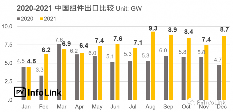 下半年進(jìn)入了傳統(tǒng)的市場(chǎng)旺季,但是受到產(chǎn)業(yè)上游的瓶頸,造成整體供應(yīng)鏈價(jià)格上升,以及中國的能耗政策影響,進(jìn)一步推升了組件的價(jià)格,高昂的海運(yùn)價(jià)格也增加了廠家的負(fù)擔(dān),終端在獲利考慮下需求暫緩,采取了包括延后發(fā)貨與重新議價(jià)等措施,導(dǎo)致了傳統(tǒng)旺季的下半年,中國組件出口卻呈現(xiàn)了下降的趨勢(shì)。