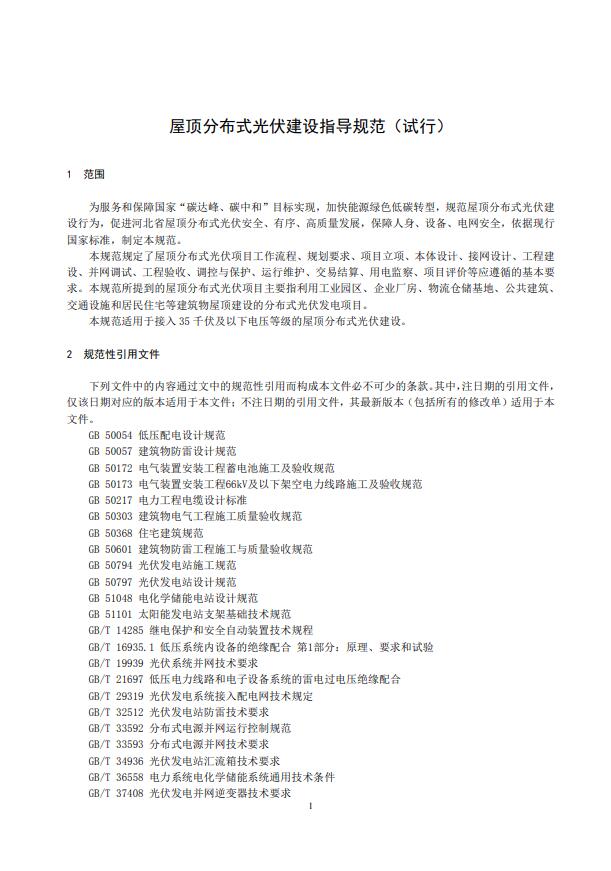 河北省能源局關(guān)于印發(fā)《屋頂分布式光伏建設(shè)指導(dǎo)規(guī)范(試行)》的通知