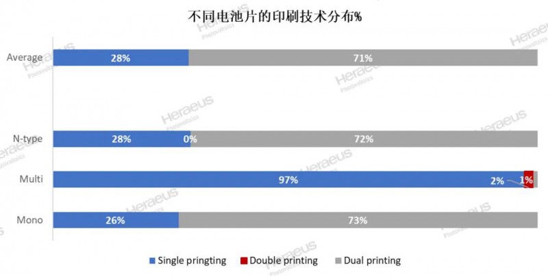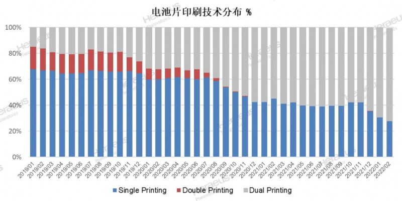 和一月份數(shù)據(jù)相比,單次印刷的比例再次下降3個百分點 ,達到了28%。N型印刷方式的選擇也更傾向于分布印刷。