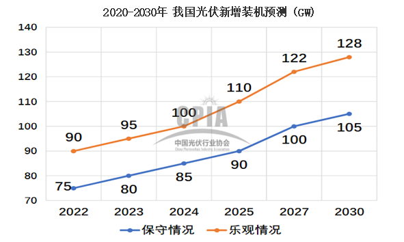 根據(jù)協(xié)會預測,中國2022年的裝機量將達到75~90GW。最晚將在2027年沖破100GW。