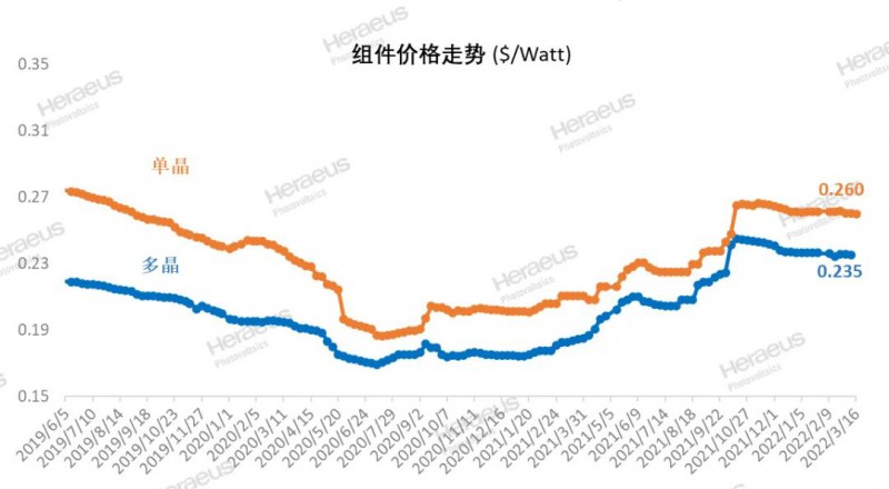 組件端雖然受到原材料價格上漲及市場影響,但其價格并未出現(xiàn)明顯的波動。