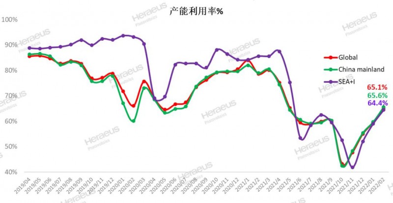 全球光伏開機率較上月持續(xù)改善,今年本月開機率已經(jīng)上升至65%。