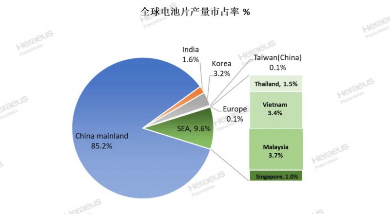 中國電池片產(chǎn)量已超過全球總量的85%。